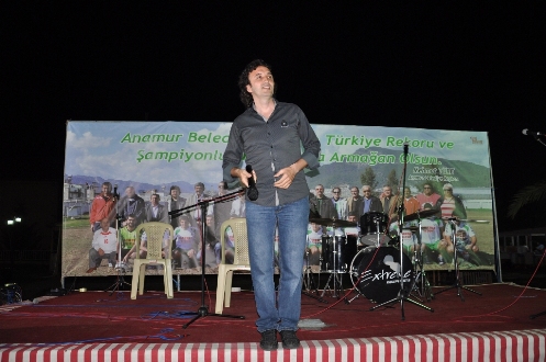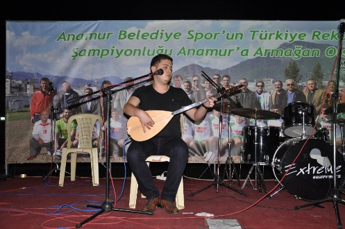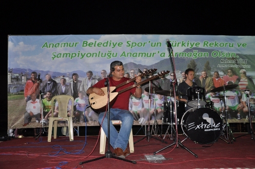 Anamur Belediyespor Şampiyonluk Kutlaması Anamur Belediyespor’un 2012-2013 sezonu Şampiyonluğu Yeni Cumhuriyet Meydanında düzenlenen muhteşem törenle kutlandı. Lig bitimine 1 hafta kala şampiyonluğunu garantileyen Anamur Belediyespor için Cumartesi saat 20:00’de gerçekleşecek kutlama programı öncesi saat 18:30’da bir de konvoy düzenlendi. Konvoya Anamurlular büyük ilgi gösterdi. Motorsikletler, araçlar hatta kamyonlardan oluşan konvoydakiler yeşil beyaz bayraklarla şehir turu attılar.  Cumhuriyet Meydanı’nda başlayan programda bir konuşma yapan Kulüp Başkanı İhsan Koyuncu, Anamur Belediyesporun, 33 maçta 30 galibiyet, 3 beraberlik alarak şampiyon olduğunu söyledi. Hedeflerinin 3. Lige yükselmek olduğunu kaydeden ve Bölgesel Amatör Lig'de de bu başarıyı önümüzdeki yıl da sürdürmek istediklerini belirten Koyuncu, Anamur Belediyespor’un bu günlere gelişinde başta Belediye Başkanı Mehmet Türe olmak üzere emeği olan herkese teşekkür etti. Anamur Belediye Başkanı Mehmet Türe bu başarı ile Anamur Belediyespor’un Anamur'u tüm ülkeye tanıttığını dile getirerek, "Takımımızı futbolcularından, teknik heyete, yöneticilere kadar kutluyorum. Seneye İnşallah bu günlerde profesyonel lige yükselmeyi kutlayacağız. Bunun sözünü veriyorum" diye konuştu. Konuşmaların ardından Belediye Başkanı Mehmet Türe, kulüp yönetimi, teknik heyet, kulüp çalışanları ve futbolcular sahneye davet edildi ve şampiyonluk kupasıyla hatıra fotoğrafı çektirildi.  Ali Koyu türküleriyle çoşturdu... Yeni klip çalışması için Anamur'a gelen ARIKAN'da gecede sahne aldı... Havai Fişek gösterileri ile devam eden Şampiyonluk kutlamalarında Yerel sanatçı Ali Koyu, Yerel sanatçı Arıkan(Kürşad ARIKAN), Yerel sanatçı Ayhan Reis ve Sadık Kutlay’ın eğitim verdiği Anamur Belediyesi Kültür Merkezi Sanatçıları Münevver Gümüş, Onat Özkurt, Ahmet Demir, Hasan Uysal ve arkadaşlarının bir birinden güzel parçaları ile meydana gelen yaklaşık 3 bin kişilik katılımcı gönüllerince coştular. Takımlarının şampiyonluk sevincini paylaştılar. Minik sesler Atakan ve Furkan da izleyicilerden bol bol alkış aldı.  Eski Kulüp Başkanlarından Sefa Mert’in konuşmasında duygulu anlar yaşadı. Takımı başarılarından dolayı kutlayan Mert; “Sizleri hem kıskanıyor, hem de tebrik ediyorum. Belediye Başkanımız Mehmet Türe’nin öncülüğünde kıyasıya mücadele eden Anamur Belediyespor oyuncularından teknik ekibine, Şimşekler Grubundan Yönetim Kuruluna ve tüm taraftarlara Anamur adına çok teşekkür ediyor, Anamur Belediyespor Takımımızı üçüncü ligde görmeyi arzu ediyorum.” dedi.   Törende takım ve teknik direktör Erkan Kahraman deyim yerindeyse halkın sevgilisi oldular. Şimşekler Grubu Lideri Özgür Beraç ve arkadaşları da katılımcılardan büyük alkış aldı. Gecede ayrıca YGS Anamur Sayısal Birincisi Tuğçe'ye Başkan Mehmet Türe dizüstü bilgisayar hediye etti. Anamur Belediyespor haftasonu kendi evinde oynadığı Silifke Belediyespor maçını da 4-0 kazanarak Türkiye liglerinde bir sezonda atılan en çok gol olan Fenerbahçe’nin 103 gollük rekorunu 104 gol ile geçti. Yeni bir Türkiye rekoru sahibi oldu.