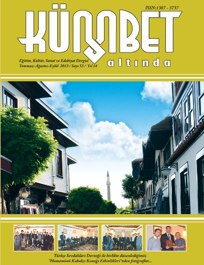 Kümbet Dergisi 53. Sayı YayımlandıKümbet Dergisi yayımcısı İrfan YILDIZ 53. Sayının tanıtımı amacıyla bir açıklama yayımladı. Kümbet Dergisi 53. Sayı Yayımlandı Kümbet Dergisi yayımcısı İrfan YILDIZ 53. Sayının tanıtımı amacıyla bir açıklama yayımladı. Açıklama aynen şöyledir: Değerli okuyucularımız… Her sayımız bir öncesinden daha dolu, daha sıcak, daha bizden, daha... Daha… Daha… Bu daha kelimesinin ötesinde gönüllerimizin bütünleşmesi var. Hizmet aşkının, ibadet aşkıyla birlikte yol arkadaşlığı var. Yazarlarımız ve şairlerimizin çalışmalarıyla buluşmanızın rahatlığını ve huzurunu gönül coğrafyamızla süsleyecek, tatlı bir yolculuğa çıkaracak güzellikleri yaşayacaksınız. Aramızdan ayrılan üstatlar, kitap tanıtımlarımız, Hamaönü, Kabakçı Konağı Kültür programlarımız, “Türkçe Sevdalıları” sayfamızdaki hikâye ve şiirler çok seviyeli ve sevimli şekilde sizlere ulaşmaktadır. Bize ulaşan bazı konularla ilgili açıklama yapmam gerekirse; Dergimizde yayınlanmak üzere ulaşan her yazı ve şiir yayın kurulumuz tarafında okunmakta, incelenmekte, görüş bildirilerek dizgi özcesi toplantıya sunulmaktadır. Yazıları ve şiirleri dergimizde yer almayanlar, yeni çalışmalarını bize ulaştırmalıdırlar. Yine sayımız çıkış tarihinden en az bir ay önce bize ulaşması gerekmektedir. Dizgimiz tamamlanmak üzere iken yayınlanması ısrarı ve ricasıyla yazı ve şiir gönderilmektedir. Süresi içerisinde ulaşmayan çalışmalar bir sonraki sayımız için bekletilecektir. Bu sayıda; Osman Baş, Erol Barın, Nail Tan, Hayrettin İvgin, Niyazi Gedik, Ali Rıza Atasoy, Tamilla Abbashanlı, Seher Ahmed, Duran Timur, Salim Ezer, Uğur Kılıç,Çiğdem kader,Saim Sakaoğlu, Kurtuluş Altunbaş,Volkan Yeşilay, Ahmet Sevgi, Şemsettin Kuzeci, Ebru Gülenç,Erbay Küçet,Bestami Yazgan, Meyna Şensoy,Yusuf Dursun’un yazıları sizleri edebiyat dünyamızın derinliklerinde güzel bir yolculuğa çıkarak ve mutlu saatlere sizi ulaştıracaktır.