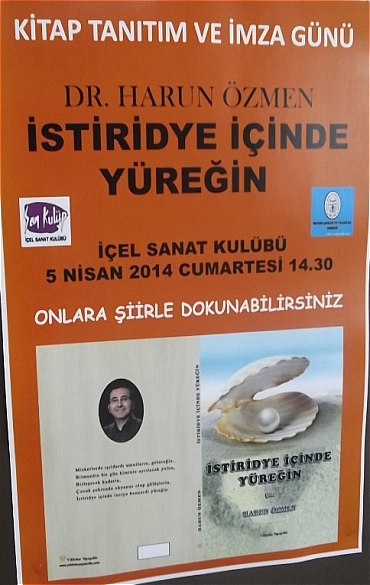 Kitap tanıtım ve imza günü İçel Sanat Kulübünde 05 Nisan 2014 Cumartesi günü saat 14.30’da gerçekleşecek.