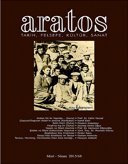 ARATOS DERGİSİ'NİN 68. SAYISI YAYIMLANDI12. YILINI KUTLAYAN DERGİNİN 68. SAYISI YAYIMLANDI. ARATOS DERGİSİ’NİN 68. SAYISI YAYIMLANDI Yayın hayatında önce başlayan Aratos tarih, felsefe, kültür ve sanat dergisinin 68. sayısı çıktı. Gazeteci Uğur Pişmanlık’ın yayınladığı ve adını Antik Çağ’da yaşamış Tarsuslu filozoftan Aratos’tan alan Aratos dergisi, 68. sayısının konu ve yazarları şöyle: Aratos On iki Yaşında.../Sunu (Prof. Dr. Çetin Veysal), Çizgiyle/Özgecan Aslan’ın anısına (Kamil Eser), Saklı Dam (Müslüm Kabadayı), Finak’ta Kış-IV (Zeynep Deniz Oğuz), Yaşam ve Ölüm Üzerine (Prof. Dr. Kamuran Elbeyoğlu), Şiddet ve Ölüm Kültüründe Yaşamak (Yard. Doç. Dr. Mustafa Günay), Tarlası Karadeniz Olan Mektep: Beşikdüzü Köy Enstitüsü (Önder Kaya), Düziçi Köy Enstitüsü ve Tarsus (Osman Homurlu), Tarsus; Yitirilmiş, Yitirilmekte Olan Kent Kimliği… (Hüseyin Adıbelli).